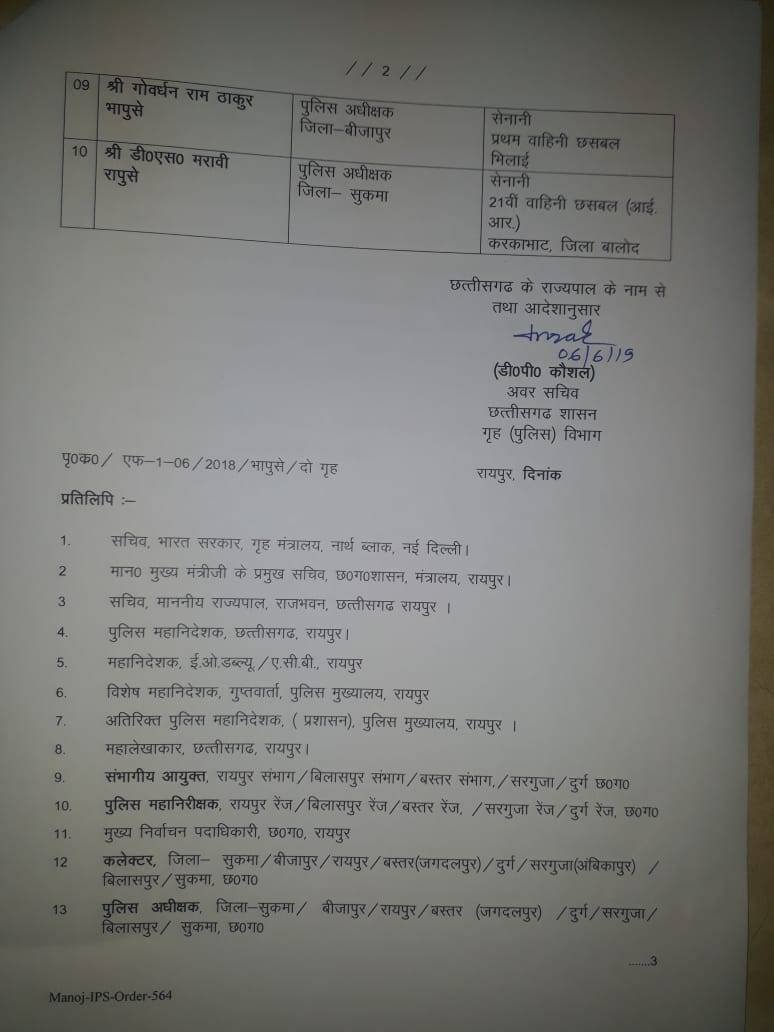 रायपुर। एसपी की ट्रांसफर लिस्ट जारी कर दी गयी है। जारी लिस्ट में कई जिलों के एसपी को इधर से उधर किया गया है। एसपी के ट्रांसफर, बिलासपुर, बस्तर, सरगुजा, सुकमा, बीजापुर के कप्तान बदलेंबता दें कि आज एसपी कांफ्रेस के बाद राज्य सरकार ने देर रात बड़े पैमाने पर एसपी का ट्रांसफर आर्डर जारी किया गया है। तबादला सूची में इन आईपीएस अधिकारियों के नाम इस प्रकार है। देखें सूची…