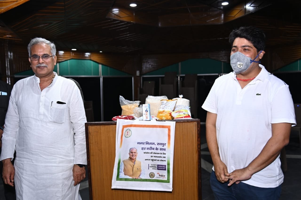 रायपुर। कोविड 19 के रोकथाम और नियंत्रण की मुहीम के तहत चल रहे लॉकडाउन के दौरान रायपुर शहरी क्षेत्र के तीस हजार जरूरतमंद परिवारों तक निःशुल्क खाद्यान्न सामग्री प्रदाय किए जाने की मानवीय पहल रायपुर नगर निगम द्वारा प्रारंभ कर दी गई है। जरूरतमंद परिवारों को नगर निगम द्वारा निर्धारित मात्रा में प्रति परिवार के मान से चावल, दाल, तेल, मसाला सहित अन्य खाद्यान्न सामग्री निःशुल्क उपलब्ध कराए जाने की व्यवस्था मुख्यमंत्री भूपेश बघेल की पहल पर शुरू की गई है। मुख्यमंत्री भूपेश बघेल ने विपदा की इस घड़ी में जरूरतमंदों की निःशुल्क मदद की इस सेवा का विधिवत शुभारंभ आज अपने निवास कार्यालय से राशन सामग्री के पैकेट के वितरण करते हुए किया। इस मौके पर मुख्यमंत्री ने नगर निगम रायपुर की इस पहल की सराहना की और इसे पूरे प्रदेश के लिए अनुकरणीय बताया। मुख्यमंत्री ने उम्मीद जताई कि संकट की इस घड़ी में कोई भी जरूरतमंद परिवार भूखा नहीं रहेगा। उनकी जरूरत का सामान शासन-प्रशासन, स्वयंसेवी, समाजसेवी संस्थाओं एवं छत्तीसगढ़ के दानदाताओं की मदद से उन तक जरूर पहुंचेगा।