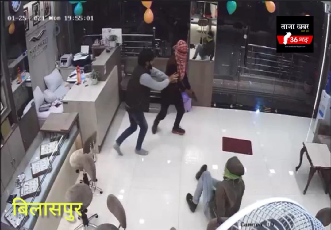 बिलासपुर। उसलापुर नेचर सिटी के पास मेनरोड की ज्वेलरी दुकान में घटित गोलीकांड की घटना में दुकान संचालक आलोक सोनी की जबरदस्त साहस और संघर्ष की झलक दुकान में लगे सीसीटीवी फुटेज में सामने आई है, जिसमें दुकान संचालक ने लुटेरों की मंशा भाँपते ही उनसे भीड़ गए और दुकान में लूटपाट की कोशिश को नाकाम कर दिया हालांकि इस झड़प में दुकान संचालक आलोक सोनी को गोलियां लगी है।
