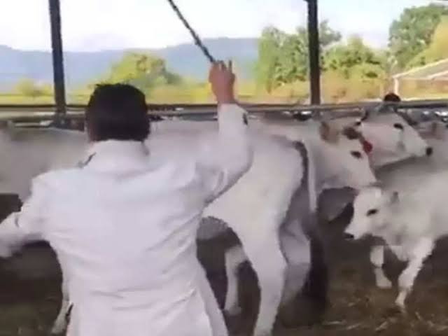 दरअसल, वायरल वीडियो में देखा जा सकता है कि एक शख्स गायों के बाड़े में खड़ा है, और उसके हाथ में डंडा है। ऐसे में वो डंडे से मारकर गायों को अंदर कर रहा है, लेकिन जैसे ही वो एक और गाय को डंडे से मारता है। तभी उसके पीछे चल रहे बछड़े ने उसको तगड़ा सबक सीखा दिया।