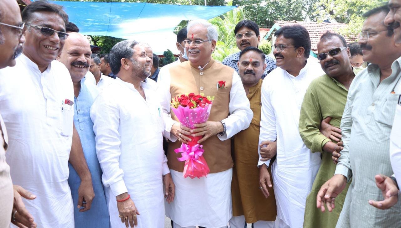 मुख्यमंत्री भूपेश बघेल के जन्मदिन के अवसर पर बधाई देने के लिए महापौर रामशरण यादव, पर्यटन मंडल अध्यक्ष अटल श्रीवास्तव, जिला पंचायत अध्यक्ष अरूण सिंह चौहान, सभापति शेख नजीरूद्दीन, जिला पंचायत सभापति मीनू सुमंत यादव, एमआईसी सदस्य व पार्षद अजय यादव, राजेश शुक्ला, महेश दूबे, नरेंद बोलर मुख्यमंत्री भूपेश बघेल से मिलने पहुंचे। मुख्यमंत्री बघेल को पारम्परिक पगड़ी पहनाई और साफा भेंट कर बधाई व शुभकामनाएं दीं।