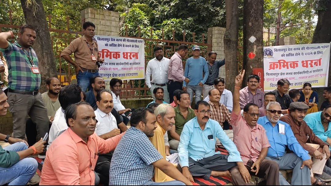 बिलासपुर। बिलासपुर प्रेस क्लब का द्विवर्षीय कार्यकाल 23 जुलाई 2023 को खत्म हो चुका है। उसके बाद भी प्रेस क्लब का चुनाव वर्तमान पदाधिकारी नहीं करा रहे है। इस बात से नाराज होकर प्रेस क्लब सदस्यों ने सोमवार से क्रमिक आंदोलन शुरू कर दिया है। सुबह 11 बजे से लेकर दोपहर 2:00 बजे तक 150 से अधिक पत्रकारों ने इस धरने को समर्थन देकर जल्द से जल्द चुनाव कराए जाने की मांग प्रशासन से की है।