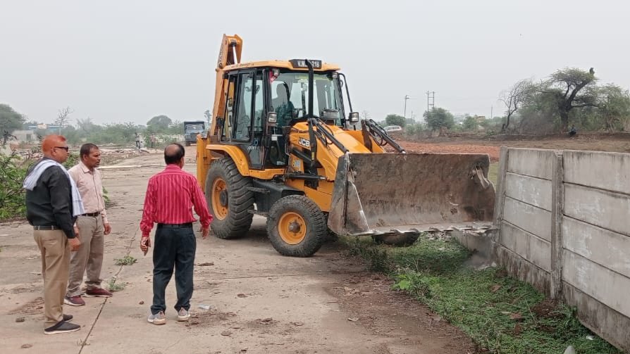 बिलासपुर। कलेक्टर अवनीश शरण और निगम कमिश्नर अमित कुमार के निर्देश पर लगातार आज तीसरे दिन भी अवैध प्लाटिंग पर कार्रवाई की गई। नगर निगम और राजस्व की संयुक्त टीम द्वारा की गई कार्रवाई में कल बचे हुए प्लाट और अन्य पर आज कार्रवाई की गई। मोपका बाईपास में बिरला स्कूल के पीछे वृहद पैमाने पर की गई अवैध प्लाटिंग पर कार्यवाही के दौरान सीसी सड़क और बाऊण्ड्रीवाल को ध्वस्त किया गया। नई सरकार बनने के पश्चात् उप मुख्यमंत्री अरूण साव ने नगरीय निकायो को अवैध प्लाटिंग पर कार्यवाही करने के निर्देश दिये गये थे।