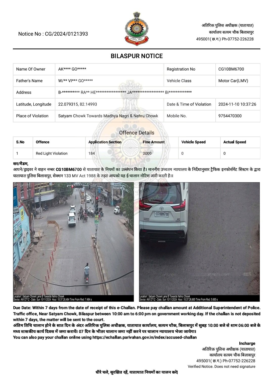बिलासपुर। 11 नवंबर 2024 को सत्यम चौक पर एक छोटी सी घटना ने शहर में चर्चा का नया विषय बना दिया। एसपी रजनेश सिंह की गाड़ी रेड लाइट जंप कर गई थी, जिसके परिणामस्वरूप दो हजार रुपये का चालान कटा। यह घटना शायद सामान्य लग सकती है, लेकिन इसके बाद एसपी ने जो कदम उठाया, वह लोगों के लिए एक उदाहरण बन गया। चालान कटने पर एसपी ने तुरंत दो हजार रुपये का भुगतान किया और इसे एक संदेश देने का अवसर बना लिया।