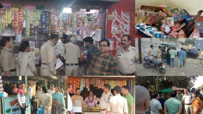 - – सघन जांच और कार्रवाई: इस अभियान के तहत शहर और ग्रामीण दोनों क्षेत्रों में एक साथ कार्रवाई की गई। स्कूलों के आसपास स्थित दुकानों और ठेलों पर निरीक्षण किया गया, और अवैध रूप से बिक रहे हजारों नग गुटका, बीड़ी, सिगरेट, और गुड़ाकू जैसी सामग्री जब्त की गई।