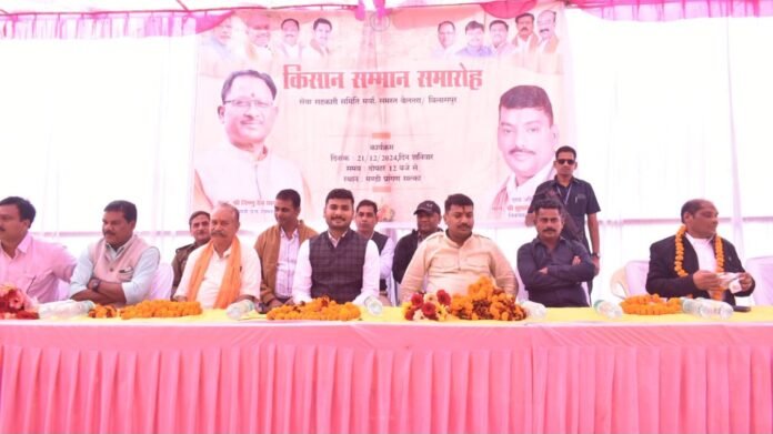बिलासपुर, 21 दिसंबर 2024: बेलतरा विधानसभा के अंतर्गत ग्राम सलखा में “किसान सम्मान समारोह” का आयोजन किया गया। इस आयोजन का मुख्य उद्देश्य अन्नदाता किसानों को सरकार द्वारा दी जा रही योजनाओं और धान खरीदी की सुविधा से जोड़ने के साथ-साथ उन्हें जागरूक करना था। समारोह में विधायक सुशांत शुक्ला मुख्य अतिथि के रूप में उपस्थित रहे, जबकि कार्यक्रम की अध्यक्षता एसडीएम पीयूष तिवारी ने की।