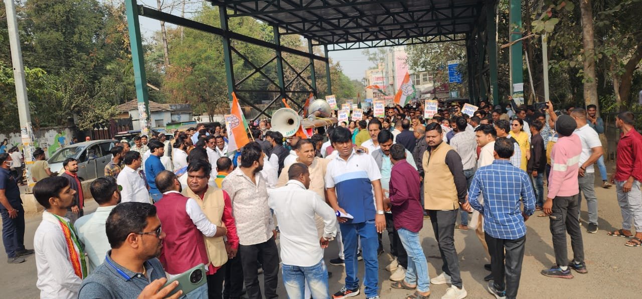 बिलासपुर। छत्तीसगढ़ के बिलासपुर में कांग्रेस पार्टी ने ओबीसी, एससी, और एसटी वर्गों के लिए आरक्षित सीटों में भारी कटौती के विरोध में ‘गिरफ्तार करो या न्याय दो’ आंदोलन का आयोजन किया। कांग्रेस के नेताओं और कार्यकर्ताओं ने कांग्रेस भवन से सिविल लाइन थाना तक एक विशाल रैली निकाली और फिर पुलिस लाइन ग्राउंड स्थित अस्थाई जेल में सामूहिक रूप से गिरफ्तारी दी।