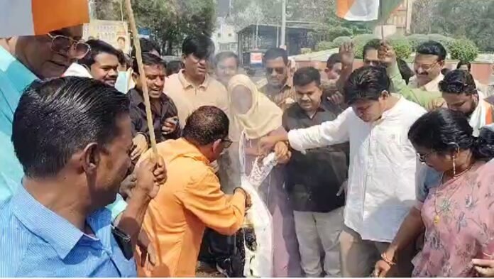 पुलिस पहले से ही मौके पर तैनात थी और कांग्रेसजनों को रोकने का प्रयास कर रही थी। पुलिस ने पुतला छीनने की कोशिश भी की, लेकिन कांग्रेस कार्यकर्ताओं ने अपनी सूझबूझ से पुलिस को चकमा देकर अंततः पुतला दहन कर दिया। जैसे ही पुतले को आग लगी, पुलिस पानी की बोतल लेकर दौड़ती रही, लेकिन कांग्रेसजन जलते पुतले को लेकर आगे बढ़ते रहे।
