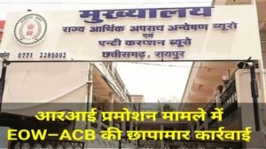 रायपुर। प्रदेश में पटवारी से राजस्व निरीक्षक (RI) बनने की परीक्षा में हुई कथित धांधली की शिकायत ने बड़ा मोड़ ले लिया है। आर्थिक अपराध अन्वेषण (EOW) और भ्रष्टाचार निरोधक ब्यूरो (ACB) की संयुक्त टीमों ने बुधवार तड़के राज्यभर में एक साथ व्यापक छापेमारी की कार्रवाई शुरू की। इस संयुक्त ऑपरेशन ने पूरे प्रशासनिक तंत्र में हड़कंप मचा दिया है।