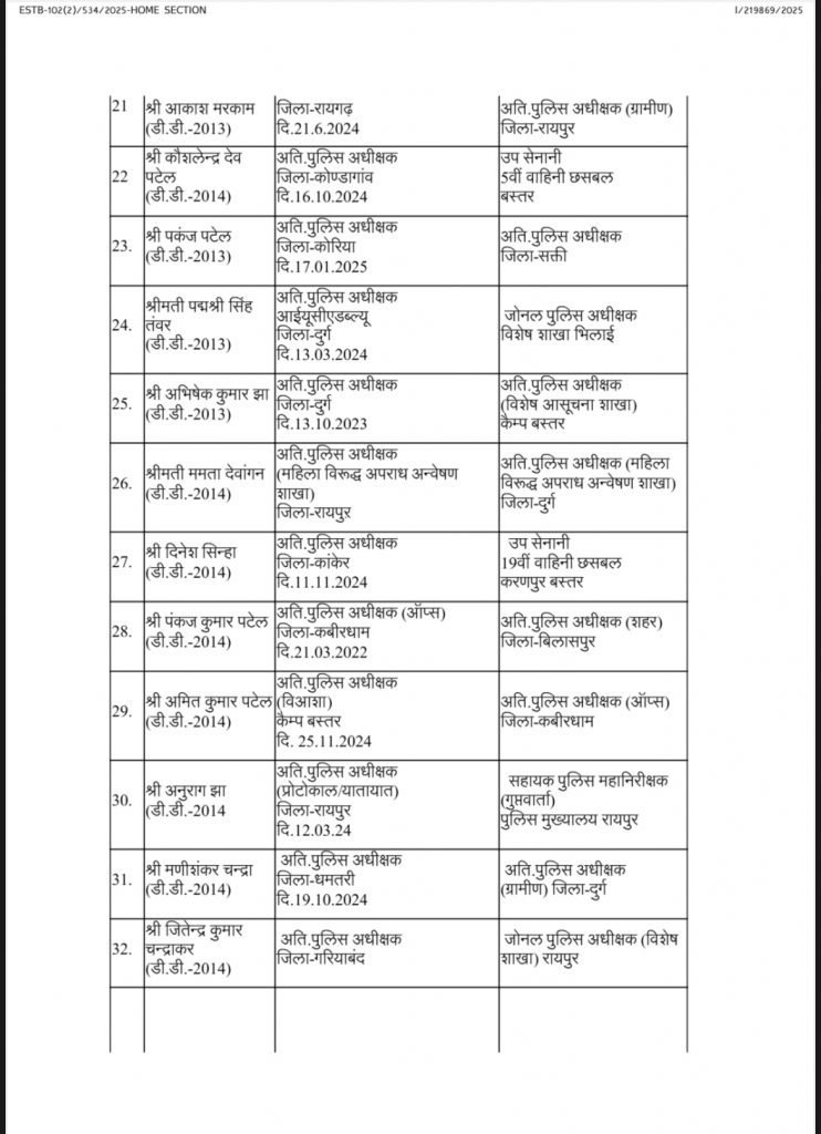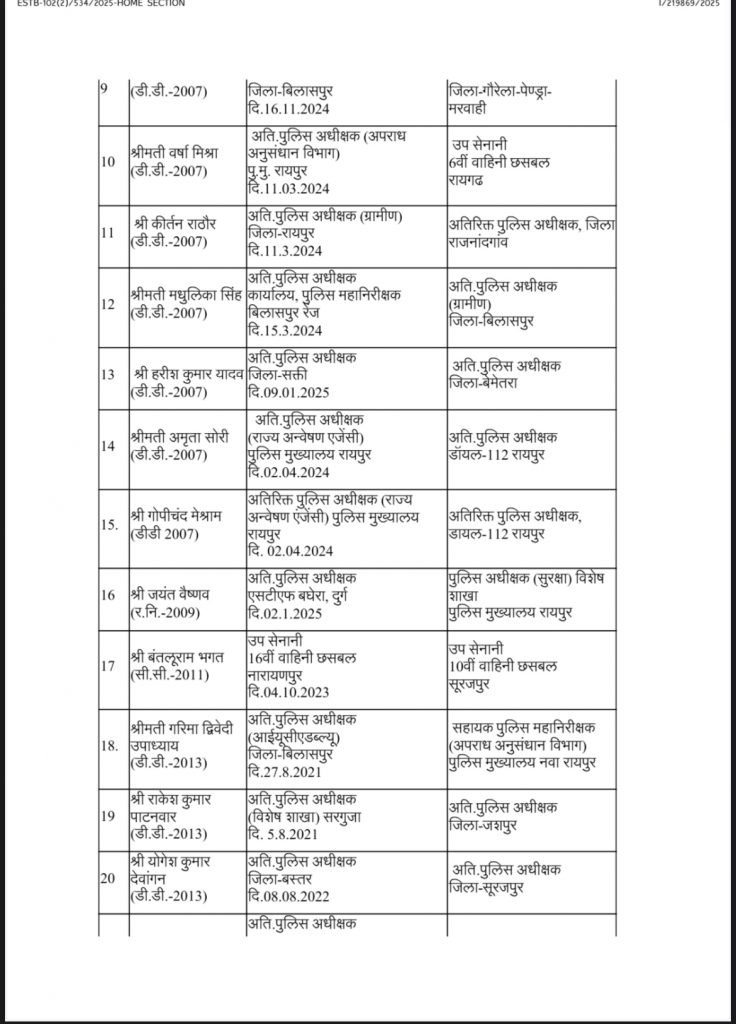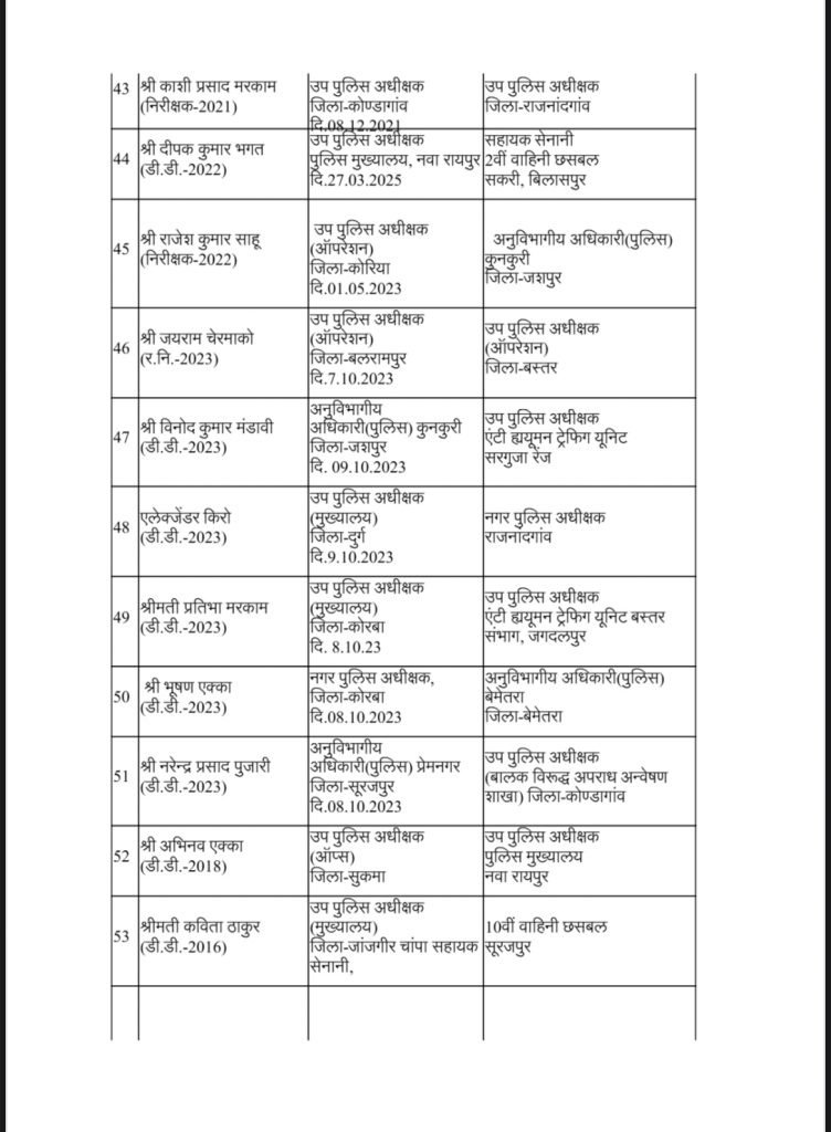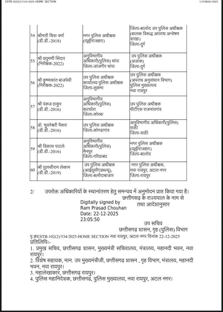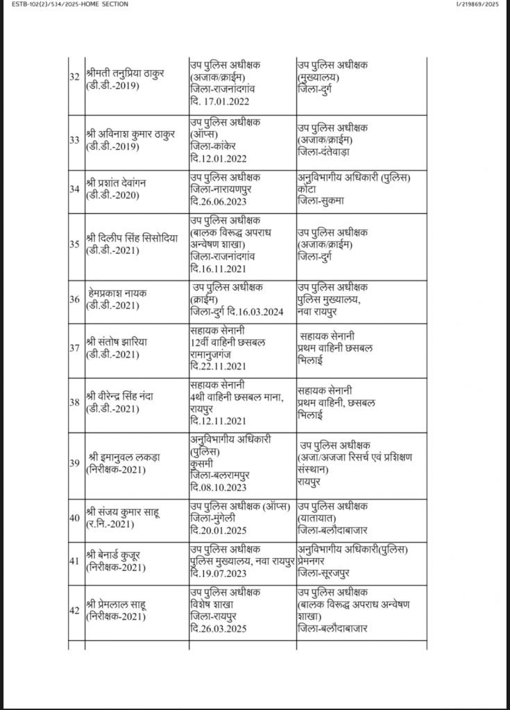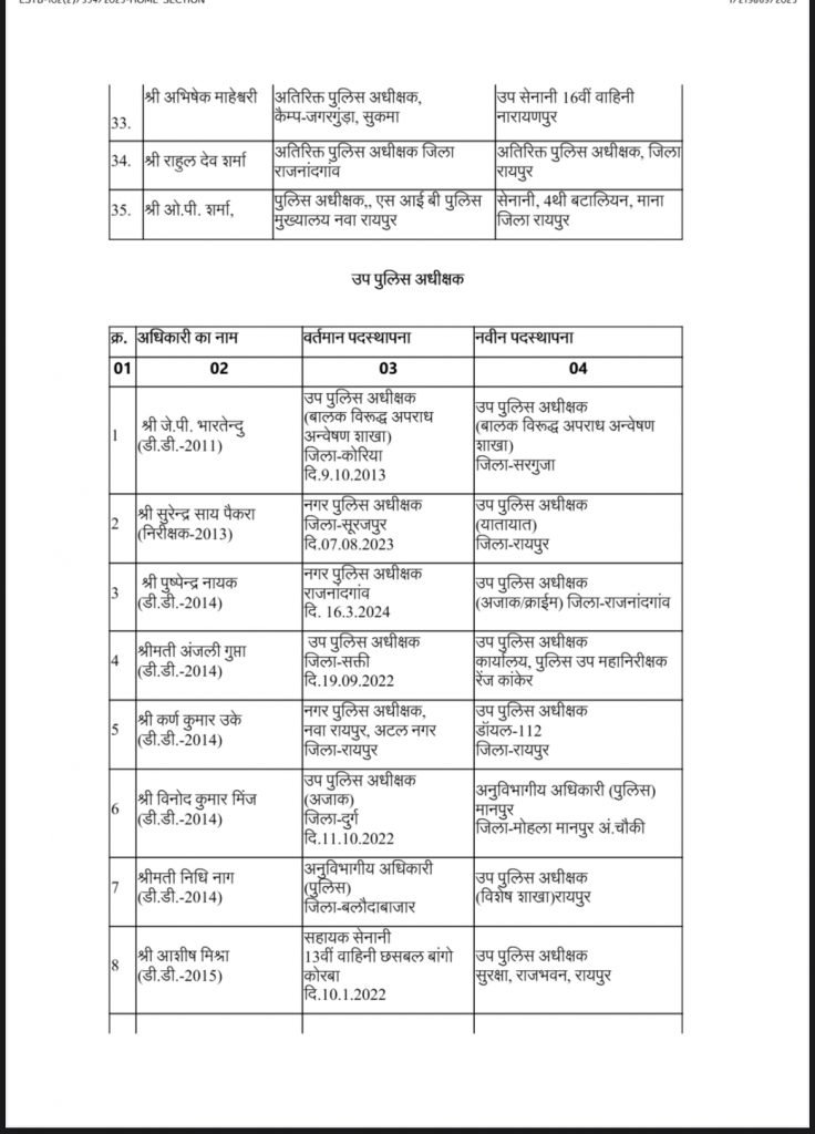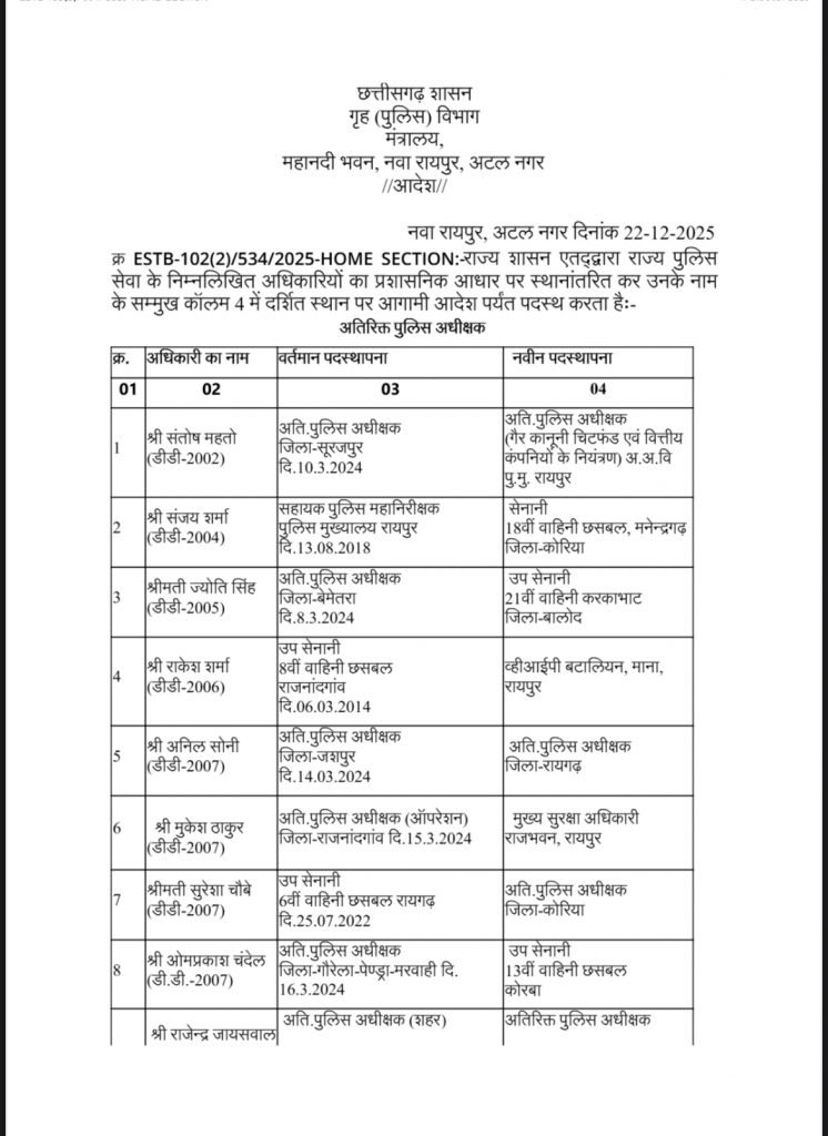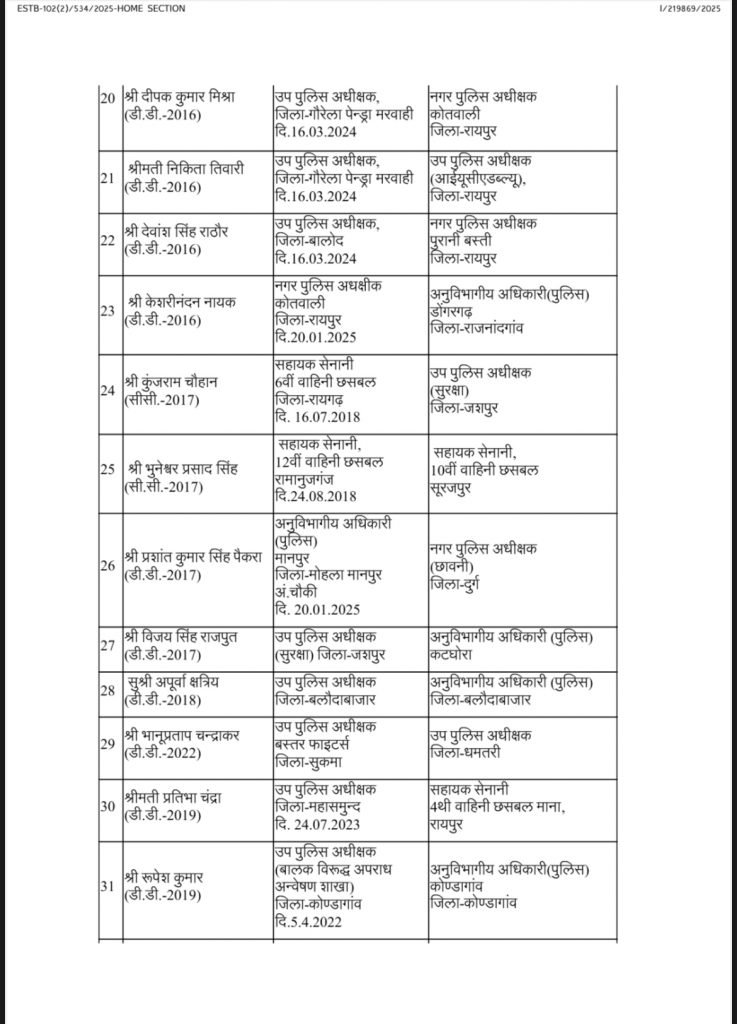 छत्तीसगढ़ पुलिस में बड़ा प्रशासनिक फेरबदल, 95 ASP–DSP के तबादले, वर्षों से जमे अधिकारियों को हटाकर नए चेहरों को मिली अहम जिम्मेदारी… देखिए लिस्ट