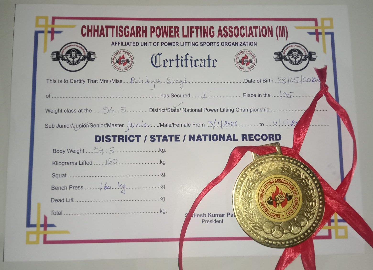 गौरतलब है कि आदित्य सिंह पिछले तीन वर्षों से लगातार छत्तीसगढ़ ओपन जूनियर पावर लिफ्टिंग प्रतियोगिताओं में गोल्ड मेडल जीतते आ रहे हैं। उनकी इस निरंतर सफलता ने उन्हें राज्य के उभरते हुए पावर लिफ्टर्स की अग्रिम पंक्ति में ला खड़ा किया है। उनके प्रदर्शन ने युवा खिलाड़ियों के लिए एक प्रेरणादायक मिसाल पेश की है।